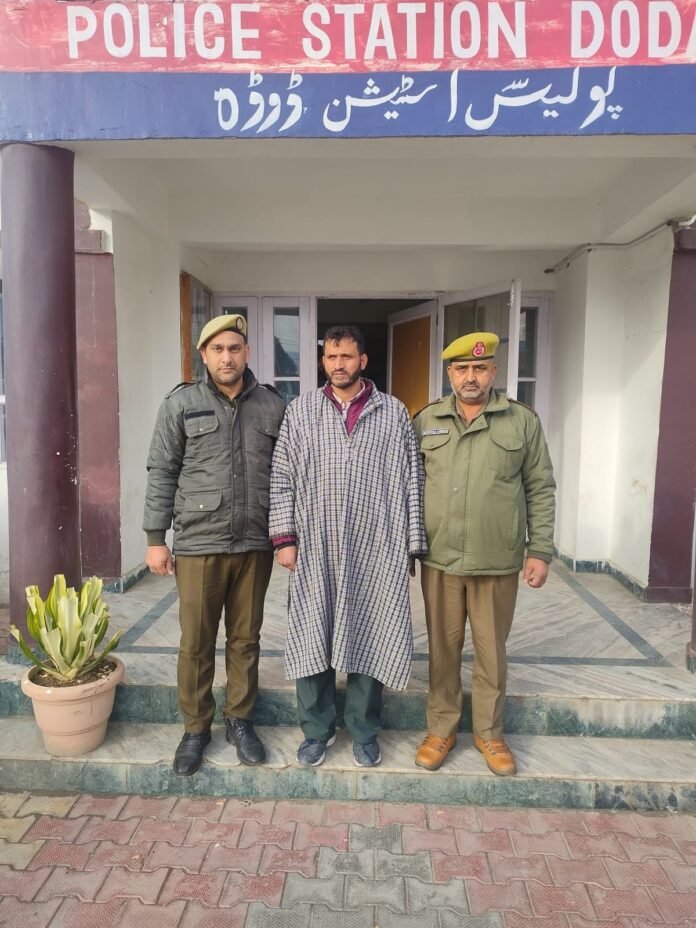 Doda, December 31: In a continued crackdown on absconders, the Doda Police have arrested a man who had been evading arrest for nine years. The accused, identified as Mohd Amran Malla, son of Mohd Afzal Malla of Harpura, Kokernag in Anantnag district, was wanted in connection with a theft case registered under FIR No. 185/2014 under Sections 457/380 RPC at Police Station Doda.