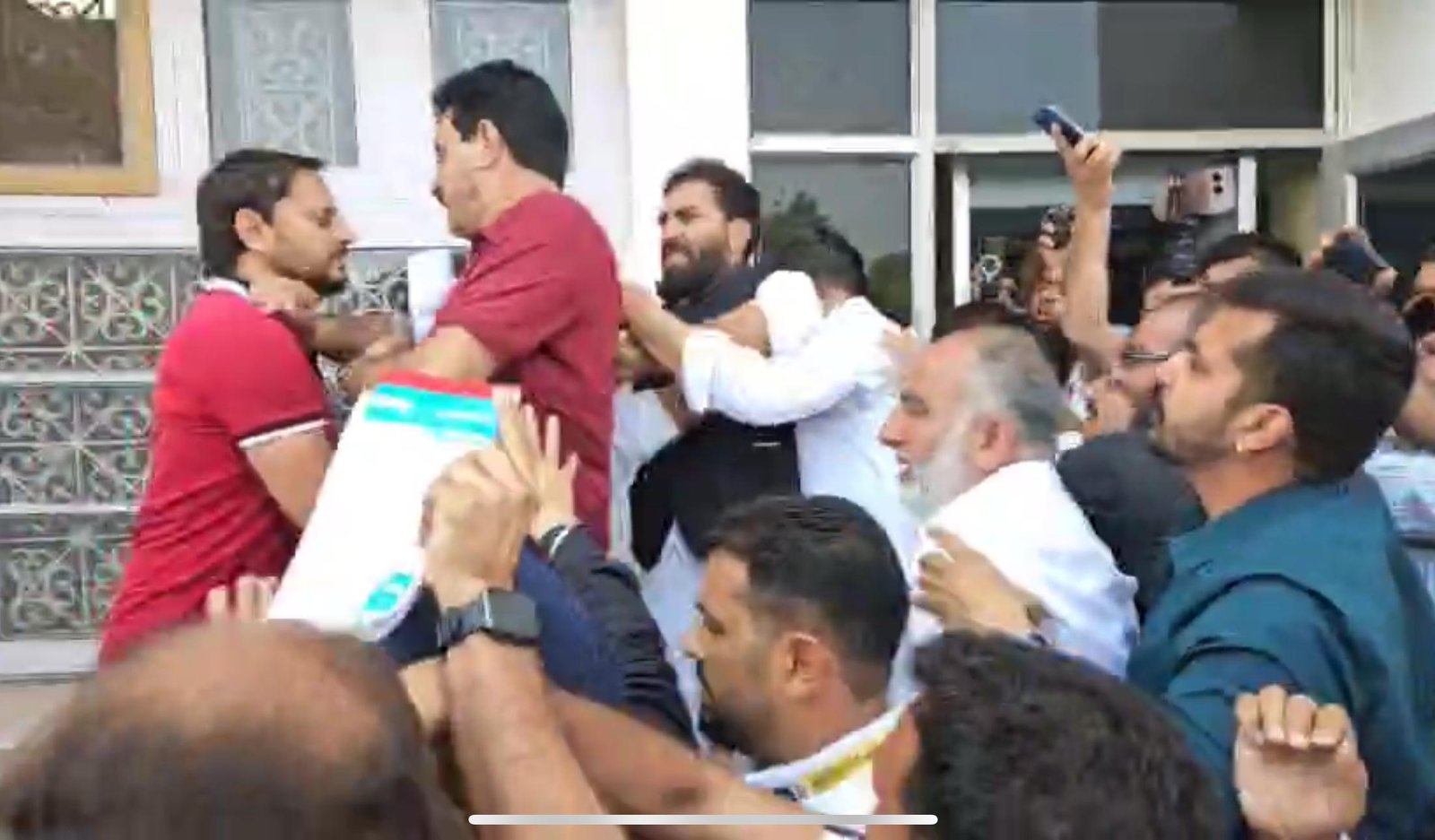 Security marshals and Assembly staff intervened and managed to pull Malik away, escorting him into the Central Hall for his safety. However, the situation remained volatile.