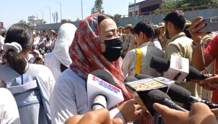 The agitation follows the death of Anjali Choudhary, a fourth-semester student of GCW Gandhi Nagar, who reportedly lost her life after falling from a moving bus during a college trip a few days ago. The incident has sparked outrage among students, who alleged lapses in safety measures and supervision.