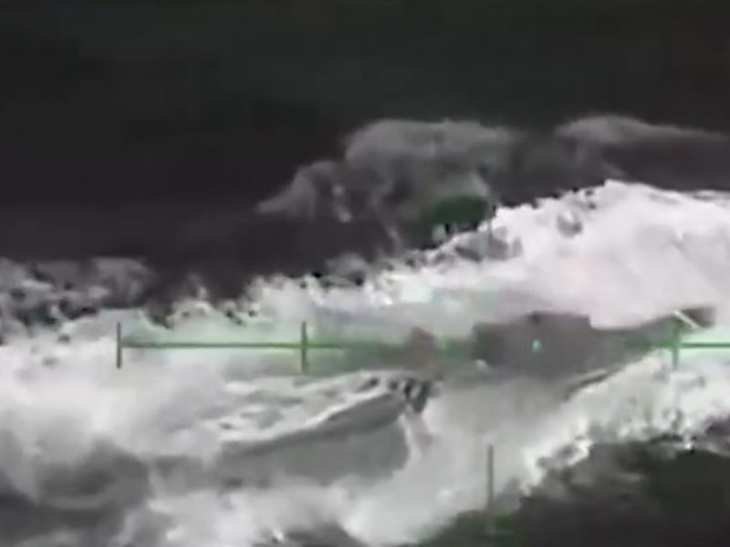 A video released by the Pentagon on X showed black-and-white surveillance footage of the strike. The semi-submersible vessel could be seen gliding partially submerged through rough waves before a series of explosions hit it, one detonating over the vessel’s rear.